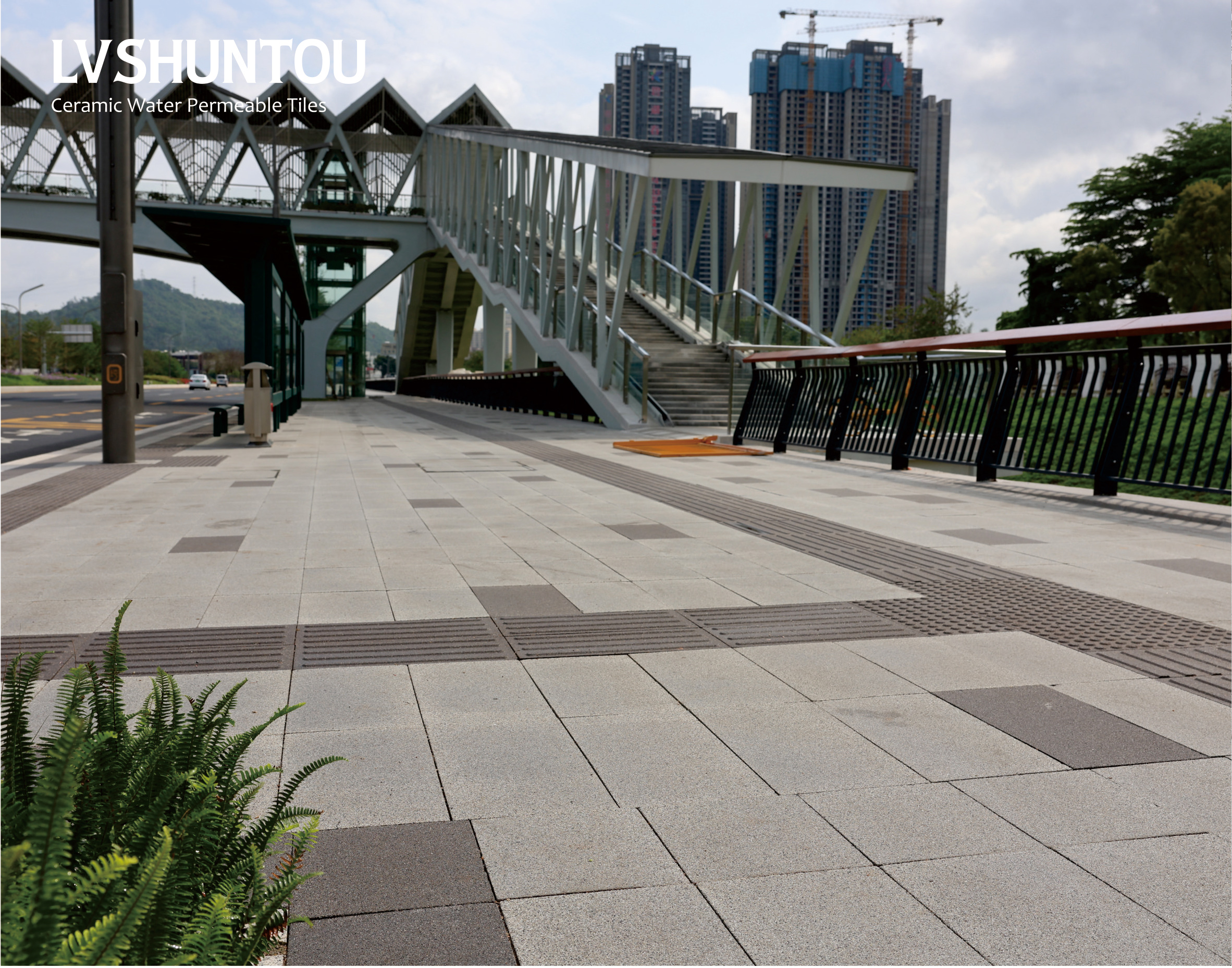 表面颗粒较粗,雨水渗透快,不易积水和形成冰层,确保行人安全